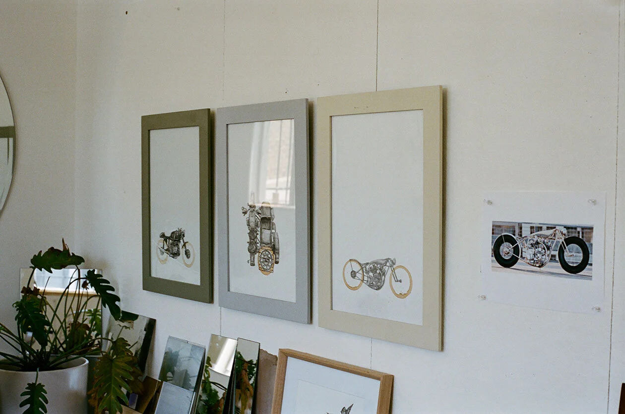A series of hand illustrated ads for Amsterdam-based motor store annex coffee bar Rusty Gold Motorshop. Drawn with pencil, coffee and love by California based illustrator Carter Asmann.